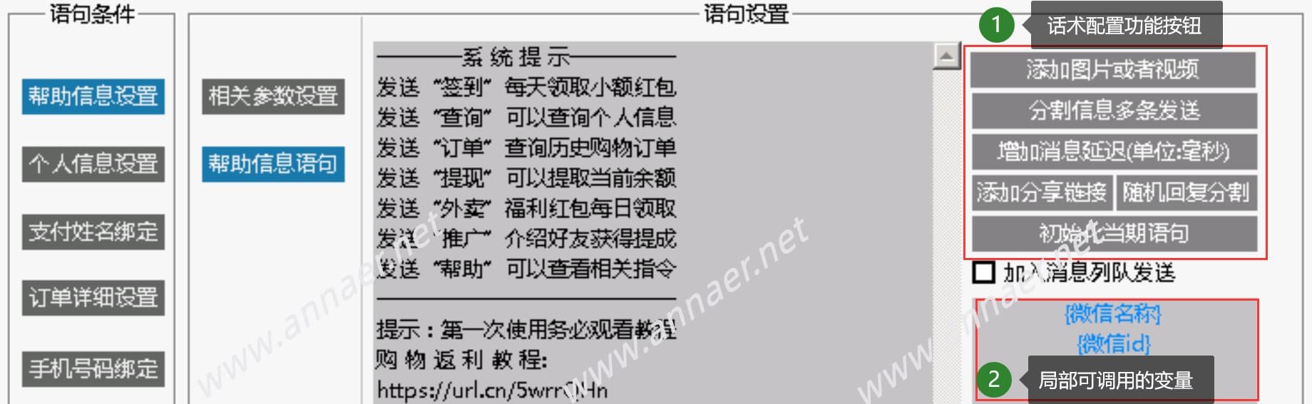 该功能很有意思,目前好像是安娜尔独家首发。设置多种回复语句模板,随机发送某一句。